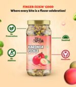 Ingredients – Karondas, Mustard Oil, Asafoetida, Turmeric powder, Fennel, Yellow Mustard Seeds, Kashmiri Red Chilli Powder, Himalayan Salt,Ā Tri Swastik Special Masala.